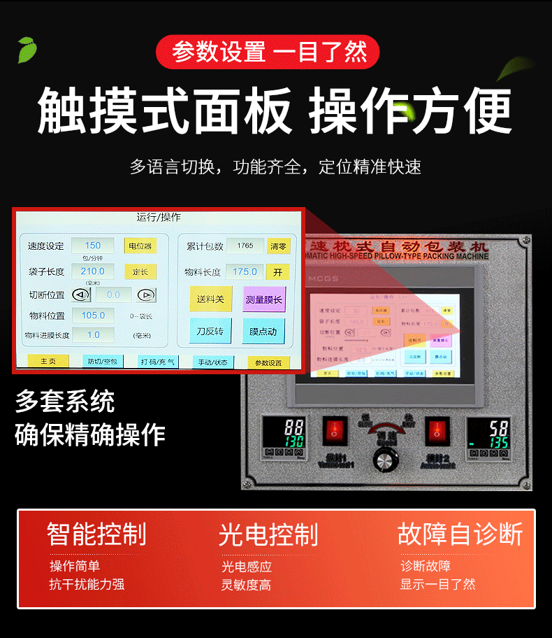 2:采用光電跟蹤技術(shù),數(shù)字化輸入,封切位置準(zhǔn)確。