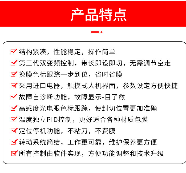 5:雙變頻控制,袋長即設(shè)即切,一步到位,省工省膜
